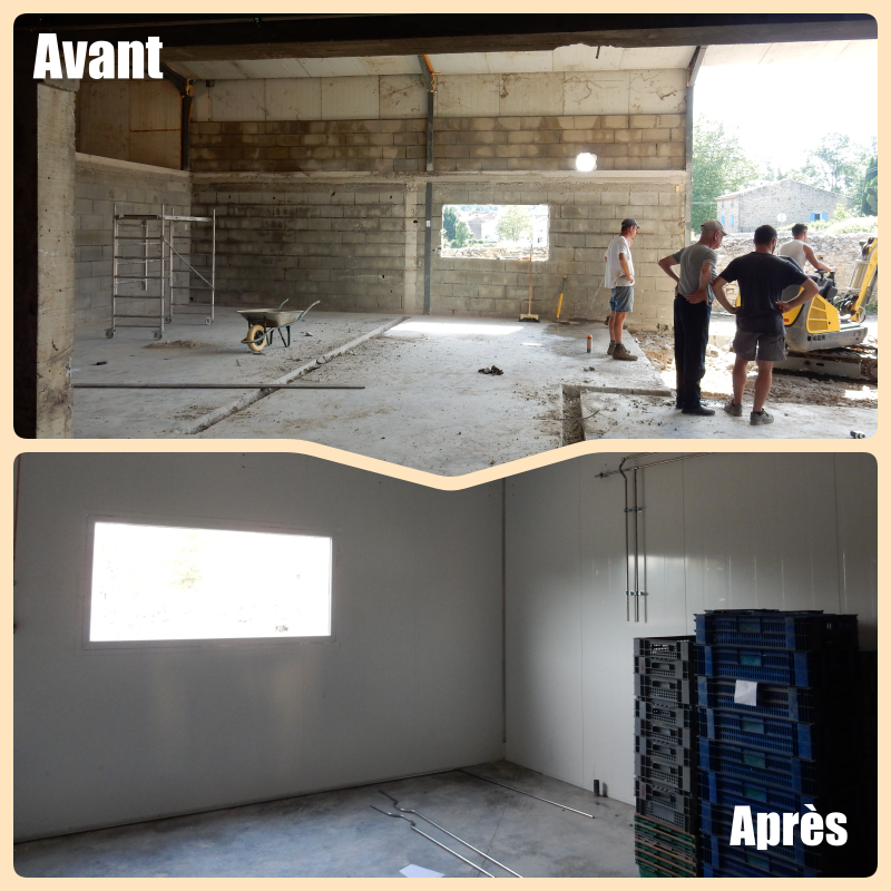 Nous vous avions promis d’autres clichés de notre extension et du réaménagement de l’ancien bâtiment de l’exploitation, et puis le temps passe trop vite… ! C’est aussi signe que notre activité s’est énormément développée cet hiver tant sur la partie commerciale de nos produits « LES DELICES DU MARAICHER » que sur la prestation de services (façonnage) pour d’autres producteurs.