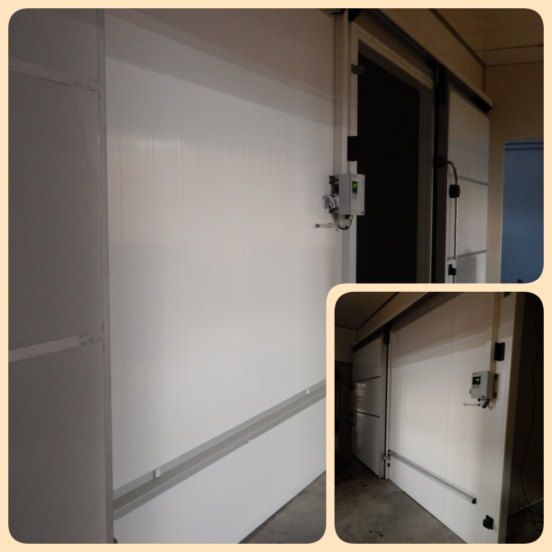 A l’intérieur, côté ancien bâtiment, nous avons réalisé quelques modifications puisque nos salles de stockage de produits finis et notre espace « étiquetage » sont devenus chambre froide (pour le stockage des légumes dont carottes à 1°C) et chambre de stockage des différentes variétés de courges cultivées (iron cap, butternut, potimarron, musquée…). A la place de notre ancien quai fourgon et de l’emplacement de notre autoclave, nous avons aménagé un petit atelier de transformation avec les équipements : éplucheuse, sauteuse, coupe-légumes…, un espace lumineux que nous avons occupé pendant la préparation de nos conserves de cardons au mois de novembre et décembre dernier.