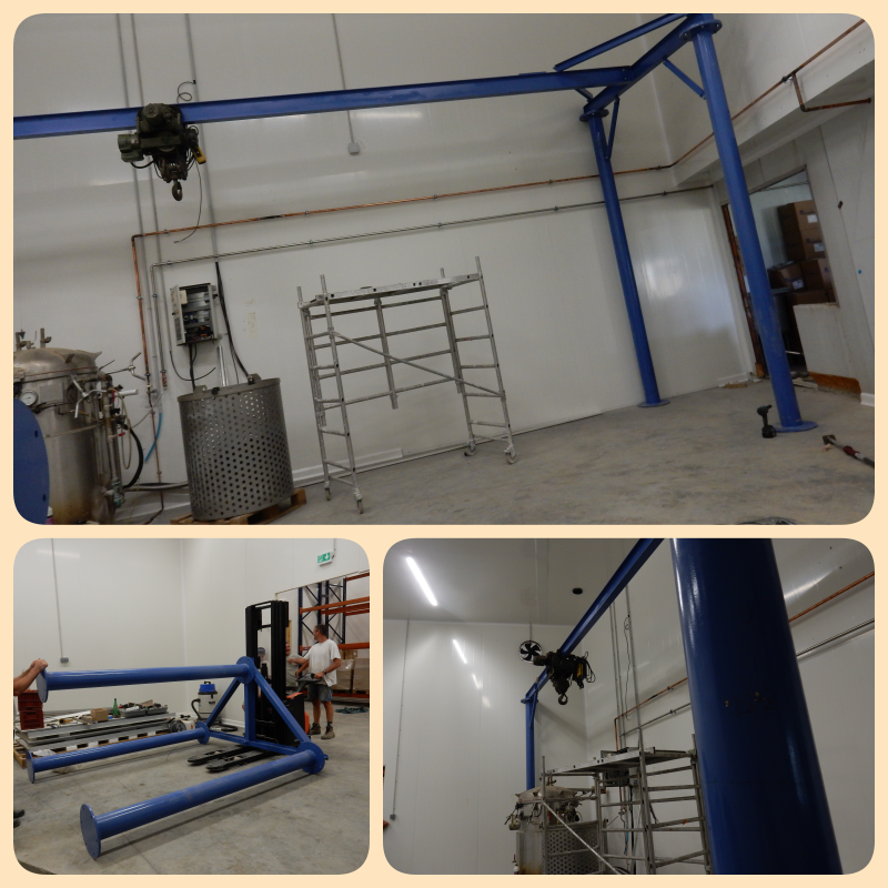 Etant donné que nous avons modifié l’agencement dans l’ancien bâtiment (la salle de stockage de nos produits finis est devenu chambre froide, le quai fourgon et l’emplacement de l’autoclave un nouvel atelier de transformation – cf article précédent), il a fallu réorganiser le stockage des soupes et conserves et trouver un nouvel emplacement pour la stérilisation de nos produits tout en respectant au mieux « la marche en avant » du processus de transformation et en tenant compte des différents flux.