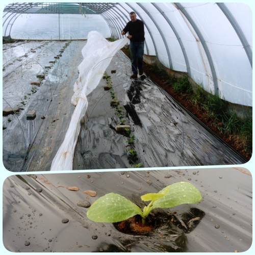Mi-mars, nous avons mis en place nos premières plantations de courgettes sous tunnels nantais et sous serres. Double protection !