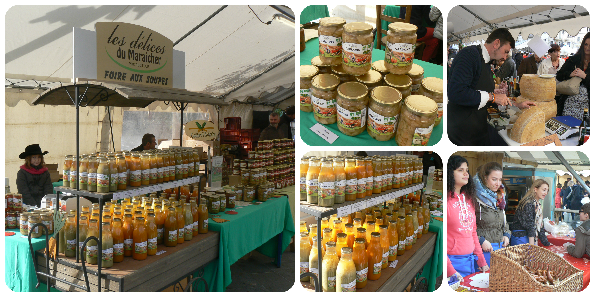 Chaque année, en novembre, nous sommes présents sur les « Gourmandises », place des Cordeliers, à Annonay… Rendez-vous gourmand par excellence pour nos visiteurs (et pour les exposants aussi) ! L’occasion de faire des dégustations de produits, d’échanger sur le savoir faire des producteurs et de faire ses emplettes pour les fêtes : sucré et salé, il y en a pour tous les goûts !