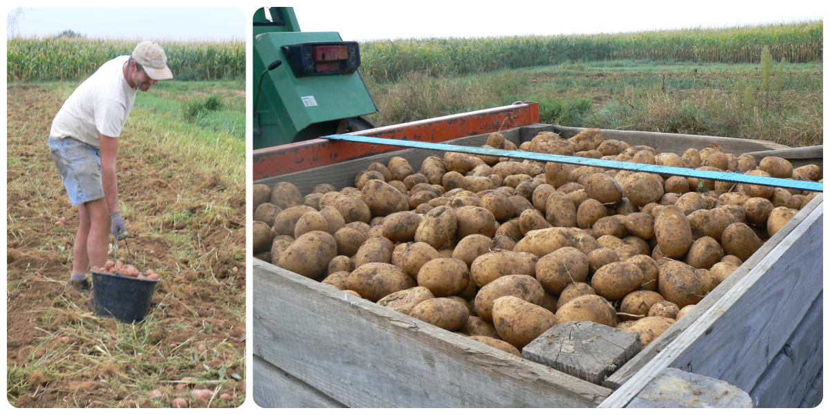 Côté cultures justement, après les oignons, nous avons rentré les potimarrons (très bon rendement cette année avec un beau stade de maturité !) et ramassons actuellement les pommes de terre. Les récoltes de tomates, courgettes, aubergines et poivrons sont moindres à présent mais nous permettent tout de même de programmer quelques transformations de ratatouille supplémentaires.