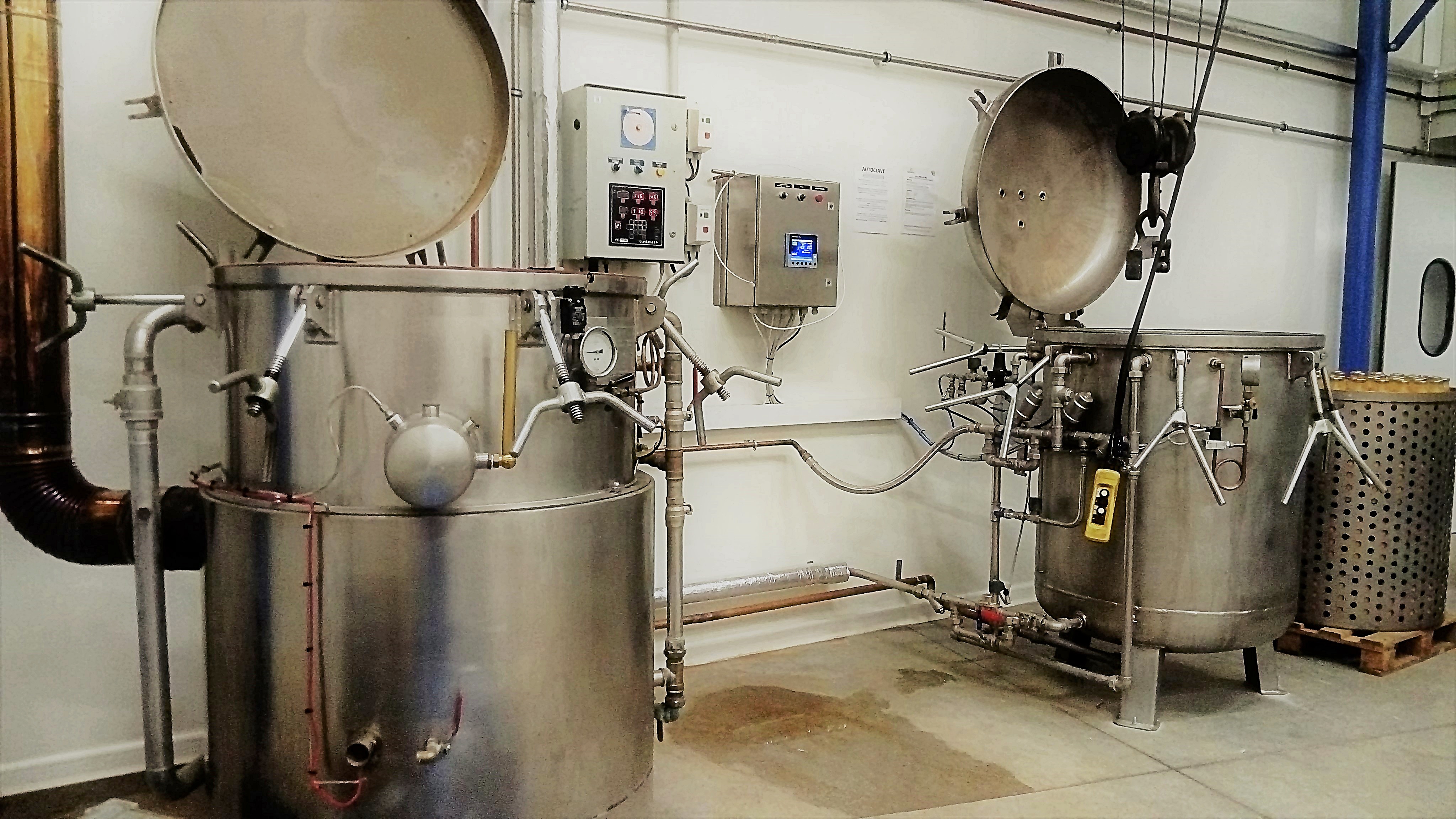 Quelques clichés de notre nouvelle organisation mise en place depuis fin juillet : de gros investissements en transformation ont été réalisés dont l’installation de deux marmites vapeur de 400 litres chacune, une ligne d’embouteillage et un deuxième autoclave vapeur pour faire face à nos volumes fabriqués et aux besoins en façonnage.
